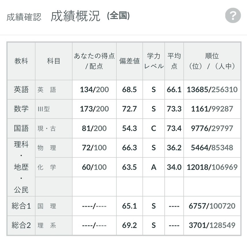 二日目も何とか終わってその後、自己採点をしました。結果は861/1000で十分な結果でした。周りには自分より点数の高い人もたくさんいましたが、そんなこと気にしてたらキリがありません。実際共通テストを乗り越えることができたことは、この後の受験に良い影響でした。